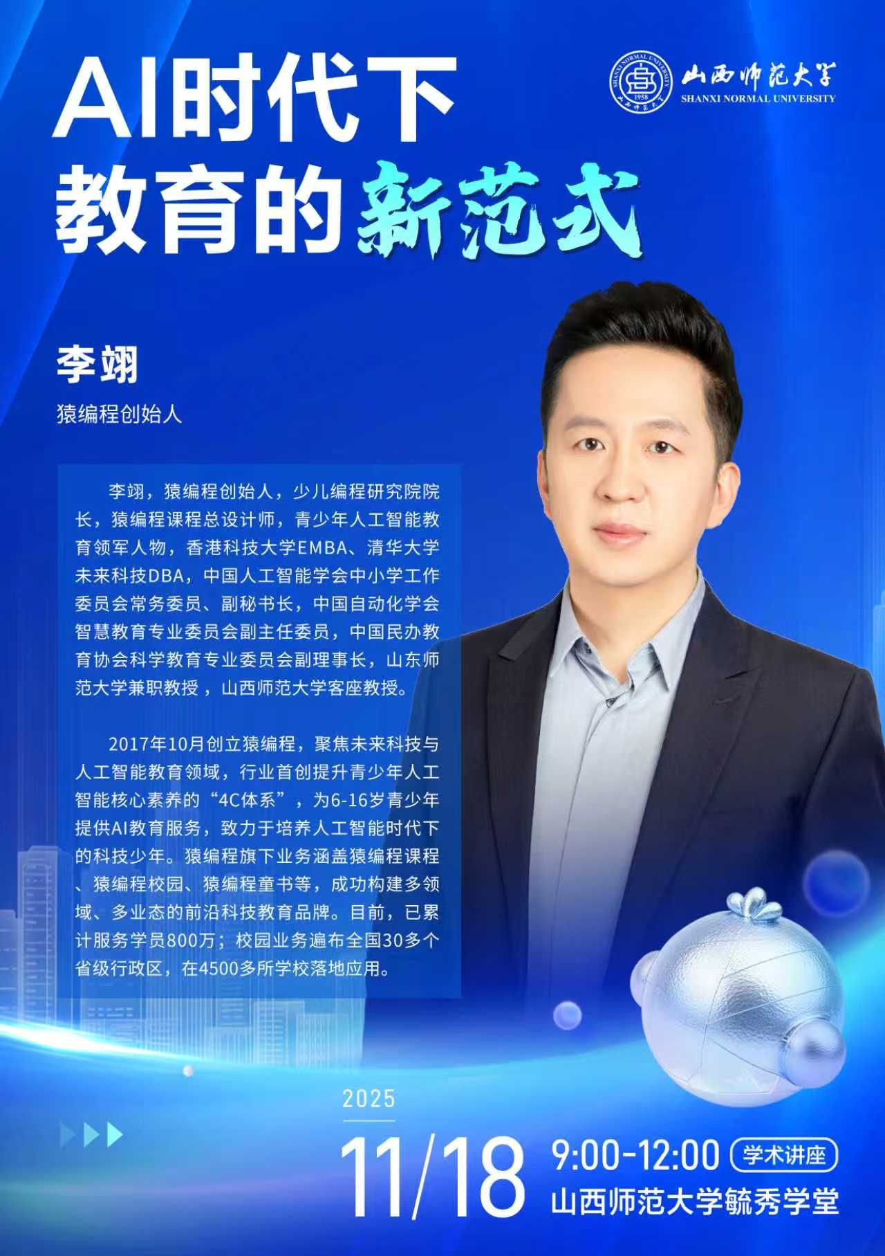 【预告】猿编程创始人李翊应教育科学学院邀请做学术讲座